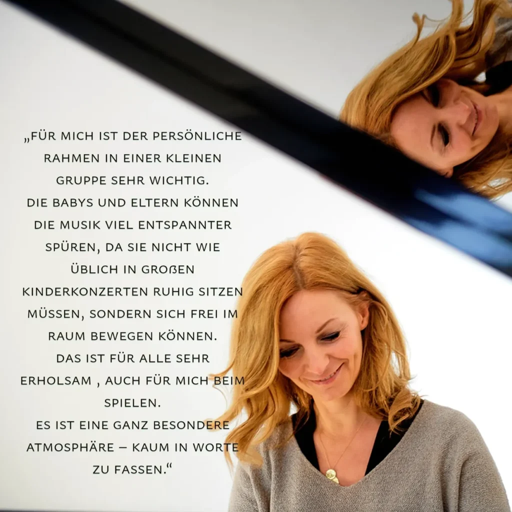 Die renommierte Pianistin und Klavierpädagogin Larissa Richter begeistert seit dem Jahr 2018 Babys und deren Eltern mit Livekonzerten in persönlicher Atmosphäre.