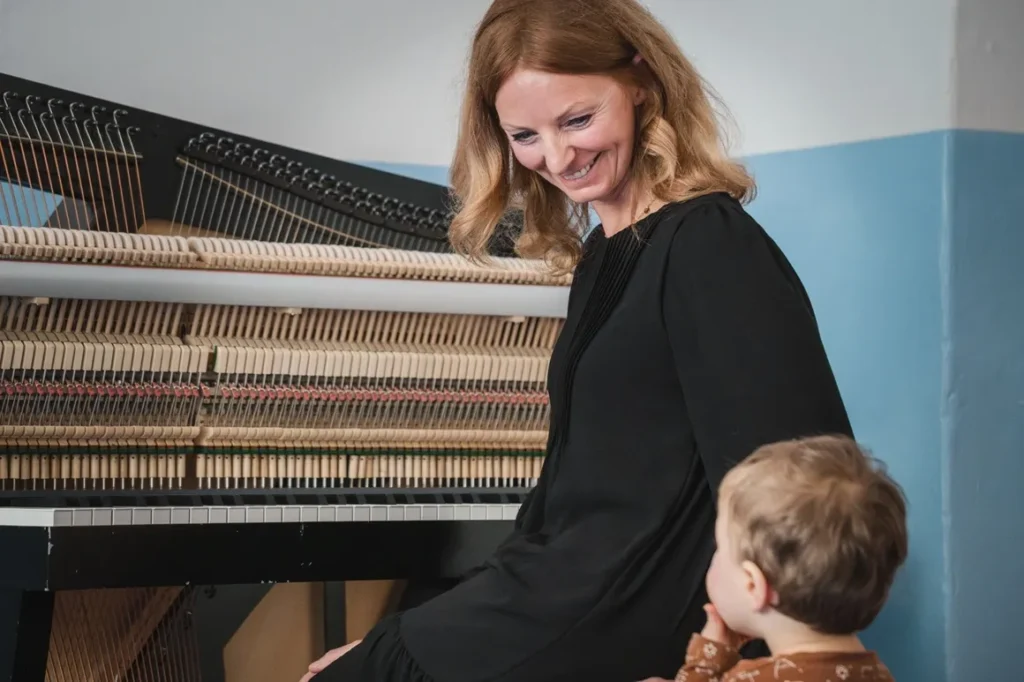 Ein live gespieltes Klavierstück berührt nicht nur Kinder, sondern auch Mütter und Väter. In kleinen Gruppen sitzen, krabbeln, tanzen oder spielen die Kinder rund um das Klavier – in einer ruhigen, geschützten Atmosphäre, die zum Lauschen, Staunen und Entspannen einlädt.
